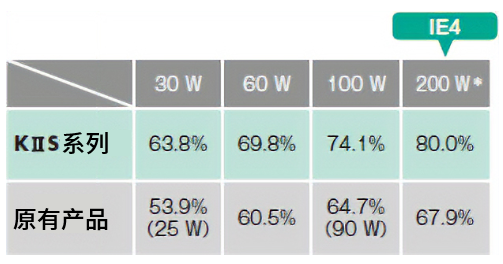 最大功率為80% 采用磁設計和專用零部件,最大效率達到80%的高效率三相電動機。大幅降低損耗,實現了電動機 輸出功率提升和無風扇化。 ●最大功率比較(參考值) ![]() [額定輸出功率60Hz時] ※ 三相380/400/415V達到IE3基準值。 IE4、IE3為國際規格的IEC 60034-30-1的效率等級。 |