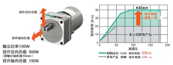 通過提高輸出軸的軸承尺寸及采用經過滲碳處理的齒輪,和原有減速機產品相比,提高了轉矩。
