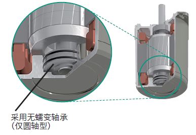 對應高速運轉 圓軸型電動機采用了防蠕變軸承,