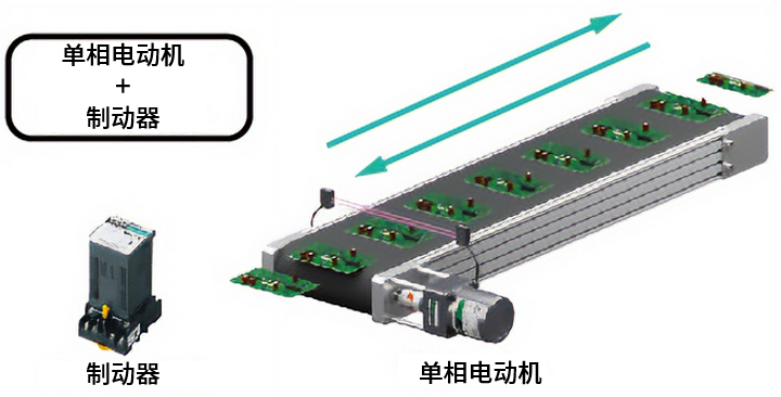 僅連接電容器及交流電源即可簡單運行。通過制動器使電動機瞬時停止
