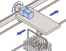 ![]() ?懸掛式搬送工件 懸掛式搬送工件, 使用齒條齒輪機構(gòu)與電動機組合而成的 電動傳動裝置(直線電動機) |