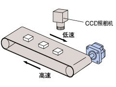 ![]() ?多階段搬送工件 設(shè)定了低速、高速2個階段 速度的傳送帶上 使用調(diào)速電動機 |