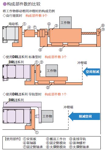 在袖珍的機體中集中收納直動機構。因無需使用過去的原有零件,縮短了裝置設計及部件選用的時間。另外,可縮減在組裝及安裝精度調節上花費的時間,有助于提高客戶的生產效率。