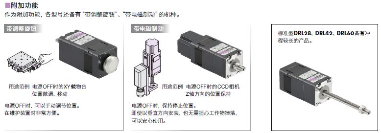 關于內部構造 DRLⅡ系列對轉子部分進行了中空化處理,采用了在轉子部分能夠收 納滾珠螺桿的構造。中空轉子旋轉會帶動滾珠螺桿螺母旋轉,通過在 滾珠螺桿的前端設置制動機構?,滾珠螺桿軸可直線工作。 滾珠螺桿分為微小進給、高精度定位的研磨滾珠螺桿和一般定位非常 可靠的滾軋滾珠螺桿2種類型。 滾珠螺桿軸被收納在中空轉子內部,因此,全長雖短,但能夠確保沖程。 而且還配置了大口徑的軸承,確保直線動作時產生的較大軸向負載會 直接作用到滾珠螺桿螺母的外圈部。 ?導軌型、平臺型不需要。 |