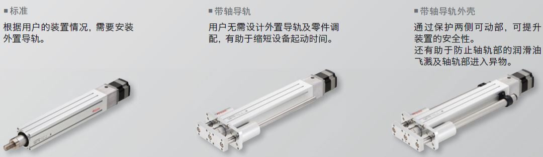●標準 / 帶軸導軌 / 帶軸導軌外殼 三種類型