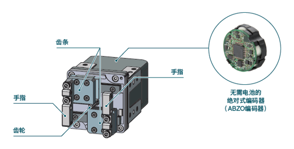 ●內置無需電池的絕對式編碼器,無需外部傳感器
