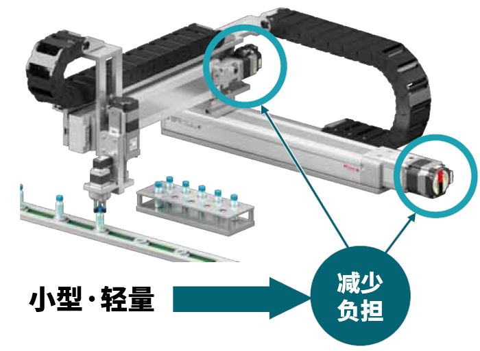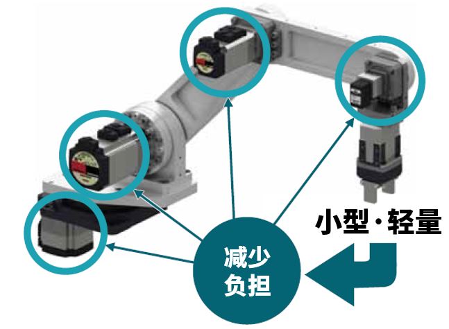 ●減輕各關節負擔,有助于機器人整體的小型化、節省成本末端執行器越是小型·輕量,越能減輕各關節的負擔,從而有助于機器人整體的小型化、節省成本。