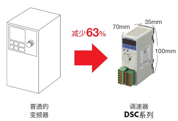 體積輕巧,功能完備◇小型控制器 體積與普通的變頻器相比縮小了63%。 ![]()