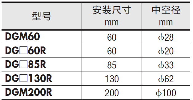 安裝尺寸60~200mm、中空徑φ20~100mm