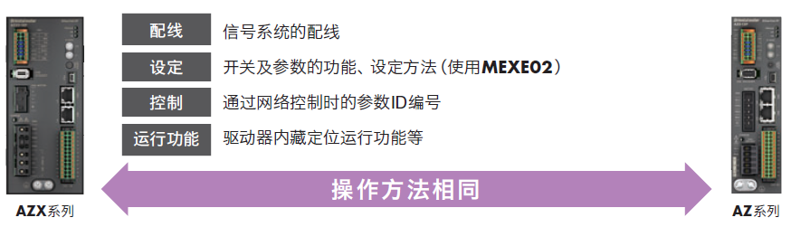 搭載AZX系列產(chǎn)品與搭載AZ系列產(chǎn)品的基本操作方法相同。在同一裝置內(nèi)同時(shí)使用時(shí),可以在操作性方面減輕負(fù)擔(dān)。