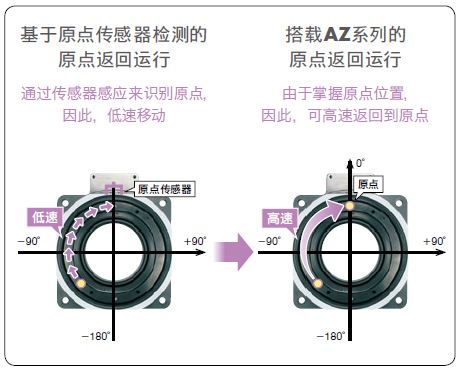 無(wú)需使用原點(diǎn)傳感器即可實(shí)現(xiàn)原點(diǎn)返回,因此,無(wú)需在意傳 感器感應(yīng)的規(guī)格,可高速執(zhí)行原點(diǎn)返回,從而縮短機(jī)器工作周期。