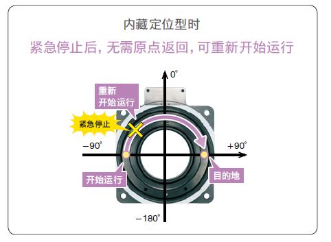 即使在定位運(yùn)行過(guò)程中切斷電源,仍能夠保持位置信息。而且,如果是內(nèi)藏定位型,則在生產(chǎn)線緊急停止以及停電后恢復(fù)供電時(shí),無(wú)需執(zhí)行原點(diǎn)返回,也能夠重新開(kāi)始定位運(yùn)行。