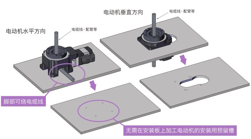 ?無(wú)需加工電動(dòng)機(jī)的安裝用預(yù)留槽,可簡(jiǎn)化安裝板。