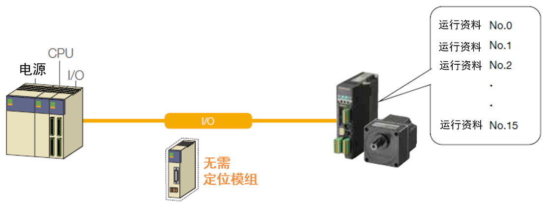 驅(qū)動器可設(shè)定最多16點的移動量、轉(zhuǎn)速等運行數(shù)據(jù)。 切換運行指令或運行數(shù)據(jù)時不需要定位模塊。