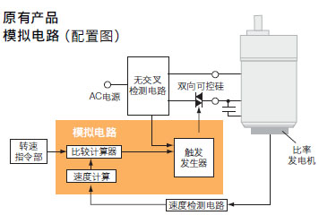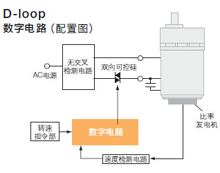 通過AC電動機搭載的比率發電機可始終對轉速進行監視。 在負載出現變動時也能夠將轉速維持在設定速度。 |