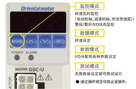 *監控模式 借助閉環控制,可將電動機的狀態實時反饋給調速器。因過載等 原因導致電動機鎖定等異常時,會輸出警報信號,并停止向電動機供電。 *可記錄最多9個履歷 警報的內容 電動機過熱 電動機鎖定 過速 EEPROM(保存數據異常) 初始時禁止運行 外部停止 |