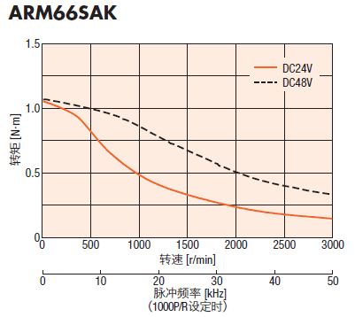 ●角度精度提高 電源規格為DC24V或DC48V。請根據電源環境選擇使用。 在DC48V使用時,與DC24V相比,轉矩加快。 (安裝尺寸20mm、28mm為DC24V輸入。) ![]() |