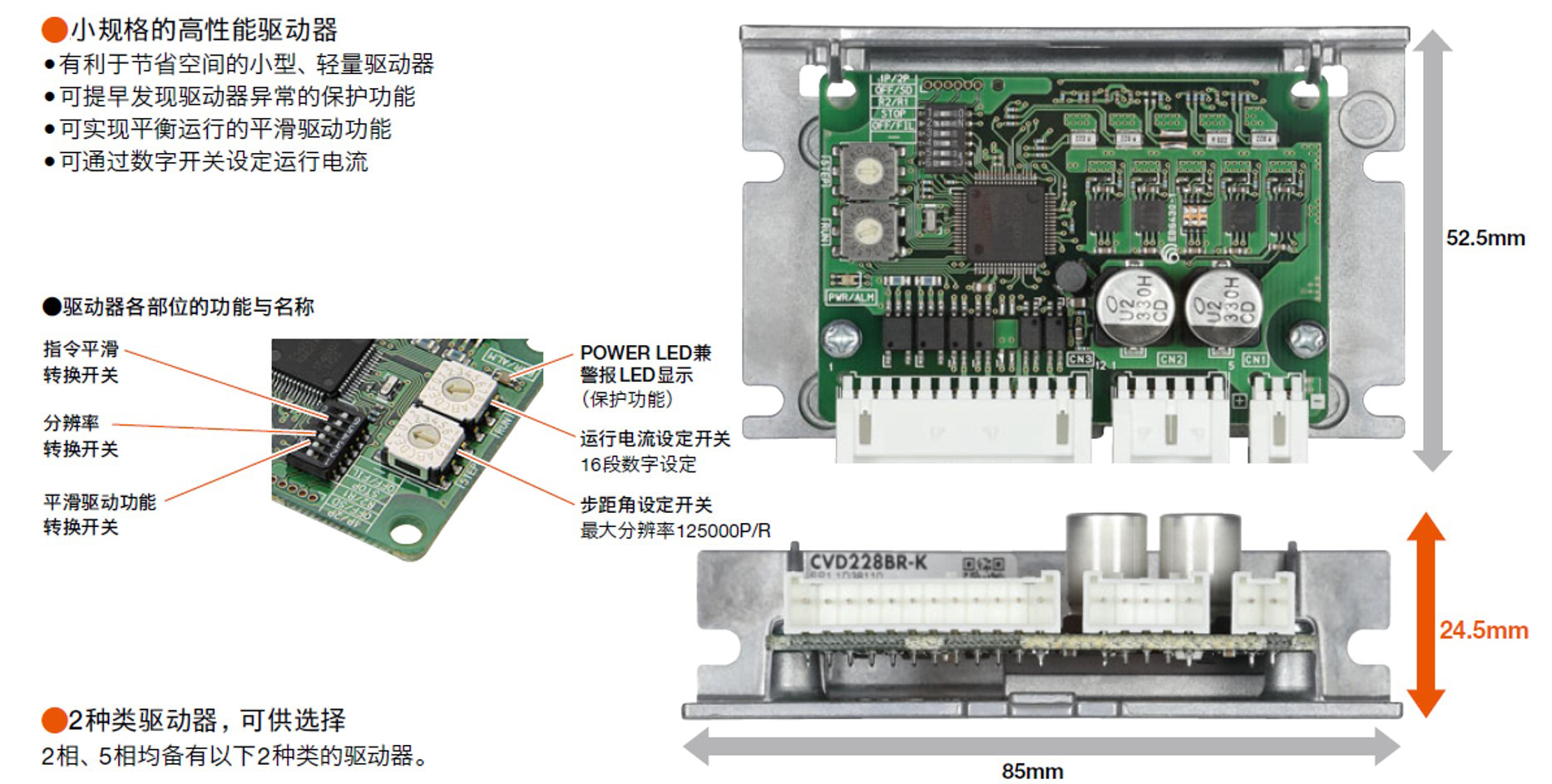 CVK系列的2相和5相驅(qū)動(dòng)器,其尺寸、安裝、I/O連接器均相同。可據(jù)要求規(guī)格自由選擇2相和5相,進(jìn)行評(píng)估。而且是小型、輕量尺寸。
