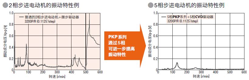 基本步距角度為較小的0.72?(高分辨率型0.36?),相比基本步距角度為1.8?的2相步進(jìn)電動(dòng)機(jī),實(shí)現(xiàn)了低振動(dòng)、低噪音。此外,通過微步驅(qū)動(dòng)驅(qū)動(dòng)器的控制,可實(shí)現(xiàn)更低振動(dòng)、低噪音驅(qū)動(dòng)。
