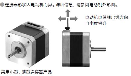 提供采用小型、薄型連接器的產(chǎn)品種類。電動(dòng)機(jī)電纜線的出線方向改為朝上,使出線方向自由度提升。