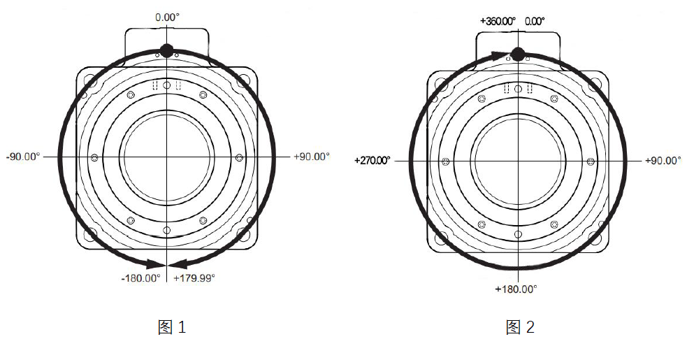 List of Q&A 2.0 > Q(ts_limo003). DG2系列出廠時自帶有坐標設定如下圖1所示,為0°→180°→-180°→0°,如何將坐標設置為如圖2所示的0°→360°?