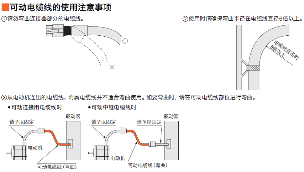 List of Q&A 2.0 > Q(ts_st006). αstep步進(jìn)電動(dòng)機(jī)可動(dòng)電纜線可彎折的要求和次數(shù)是多少?