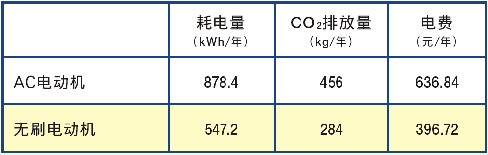 節(jié)能效果 從AC電動機至無刷電動機的轉(zhuǎn)換