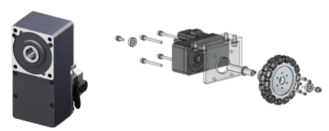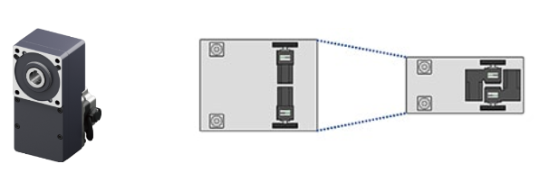 通過使用中空軸扁平減速機,并交錯安裝,實現減少車身寬度的細長設計。因此窄路也能同時行駛。從而減少了搬送機器人的等待時間、有助于提高效率。