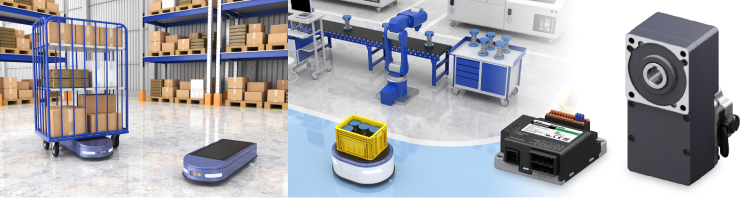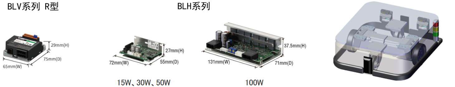 無刷電動機BLV/BLH系列可實現電池驅動,因此可用于搬送機器人的車軸或搭載于搬送裝置。