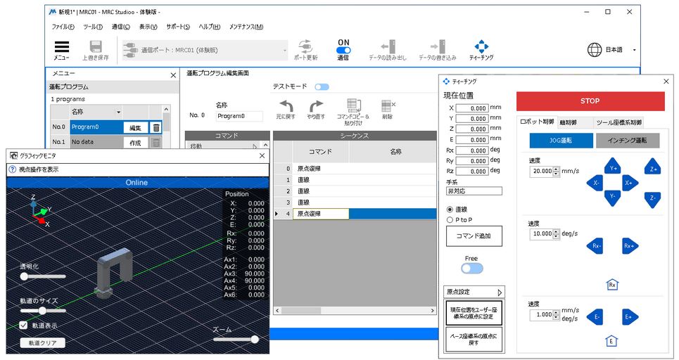 備有體驗MRC Studio操作性的體驗版。沒有MRC01也可使用,在線3D模擬中確認動作。