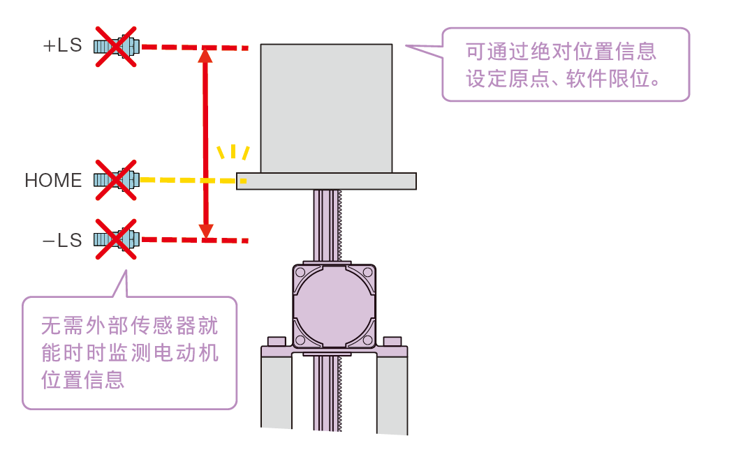 ●無需原點(diǎn)傳感器、限制傳感器,配線簡(jiǎn)潔。