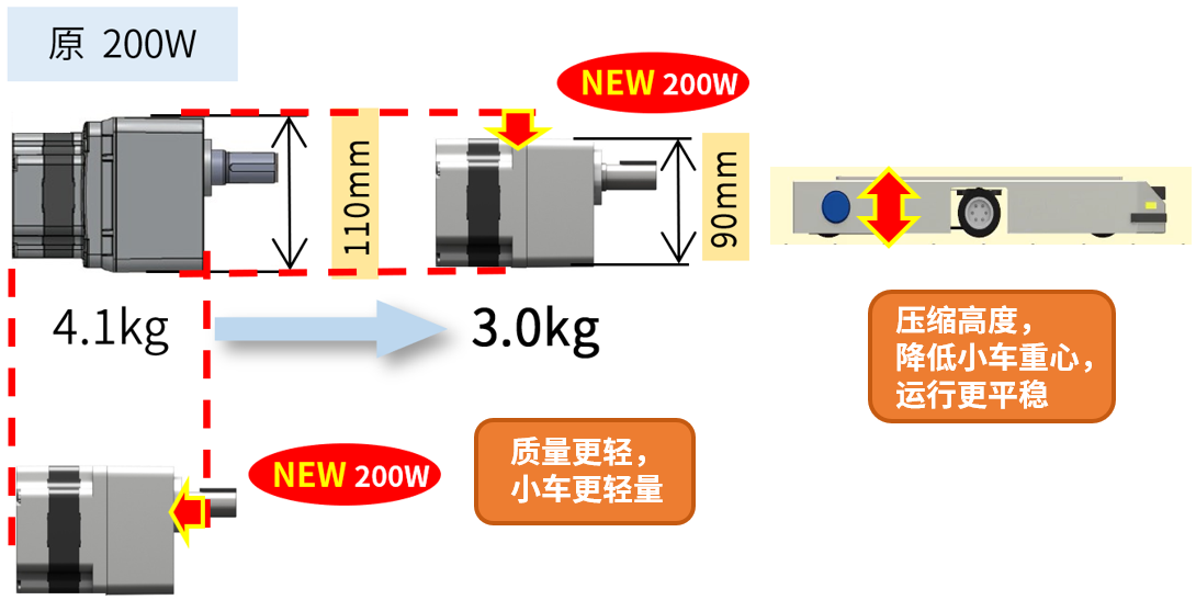 ■驅動方案同樣大幅度小型、輕量化 可收納到裝置內有限空間的尺寸,小車設計更小型、輕量。 ![]()
