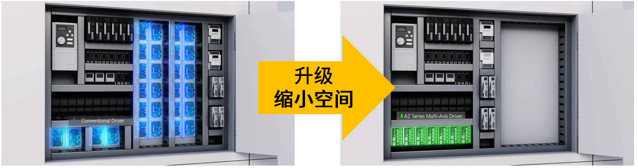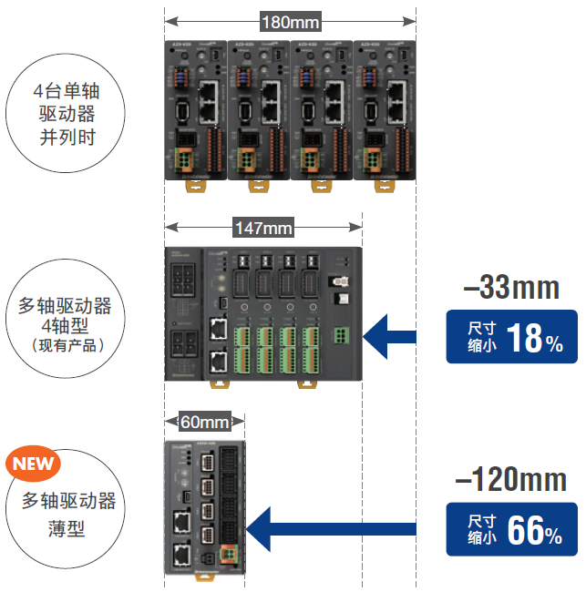 與傳統驅動器相比,多軸驅動器·薄型可減少約66%的安裝空間。
