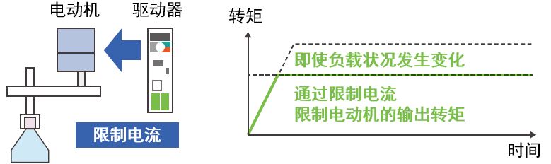 ●搭載轉矩限制功能 通過轉矩限制功能,可確保電動機不會輸出任意設定值以上的轉矩。 ![]()