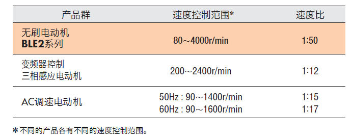 無刷電動機BLE2系列相較于AC調速電動機及變頻器,能夠實現更廣范圍的速度控制。