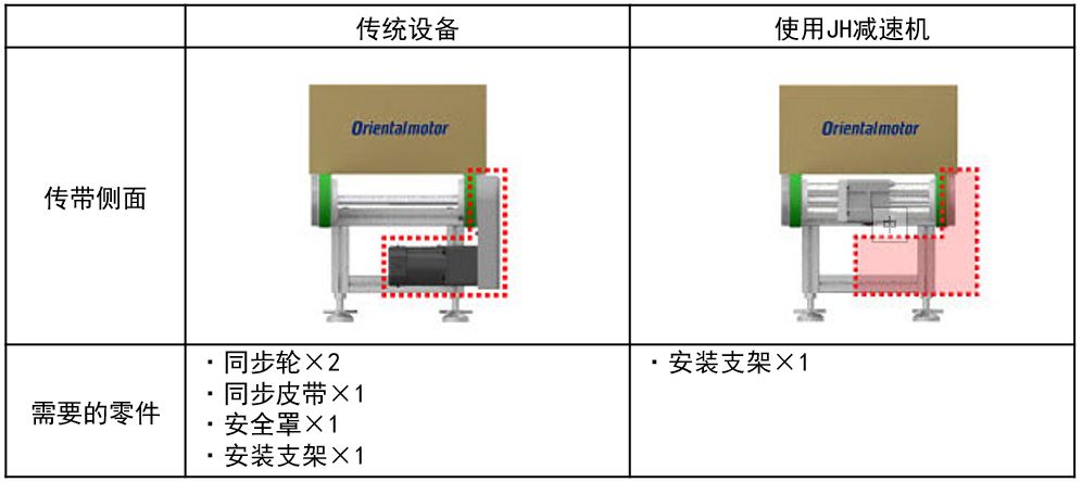 東方馬達無刷電動機BMU系列/BLE2系列高強度直交軸中空軸型JH減速機對比傳統設備: