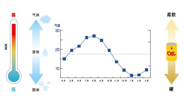 液體因溫度變化而發生狀態變化,轉變為氣體、固體。潤滑脂及潤滑油等潤滑劑在溫度升高后會變軟或蒸發,而溫度降低會變硬,對運行造成阻力。通過將季節的“溫度變化”可視化,可控制室溫,并以良好的狀態起動裝置。