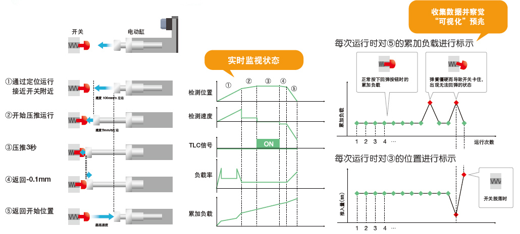 不僅能夠監控“位置”、“速度”,還能夠監控“溫度”、“負載”、“運行距離”、“電源的狀態”等。只需更換為能夠作為傳感器*發揮功能的AZ系列,就能夠邁出實現“可視化”的一小步。
