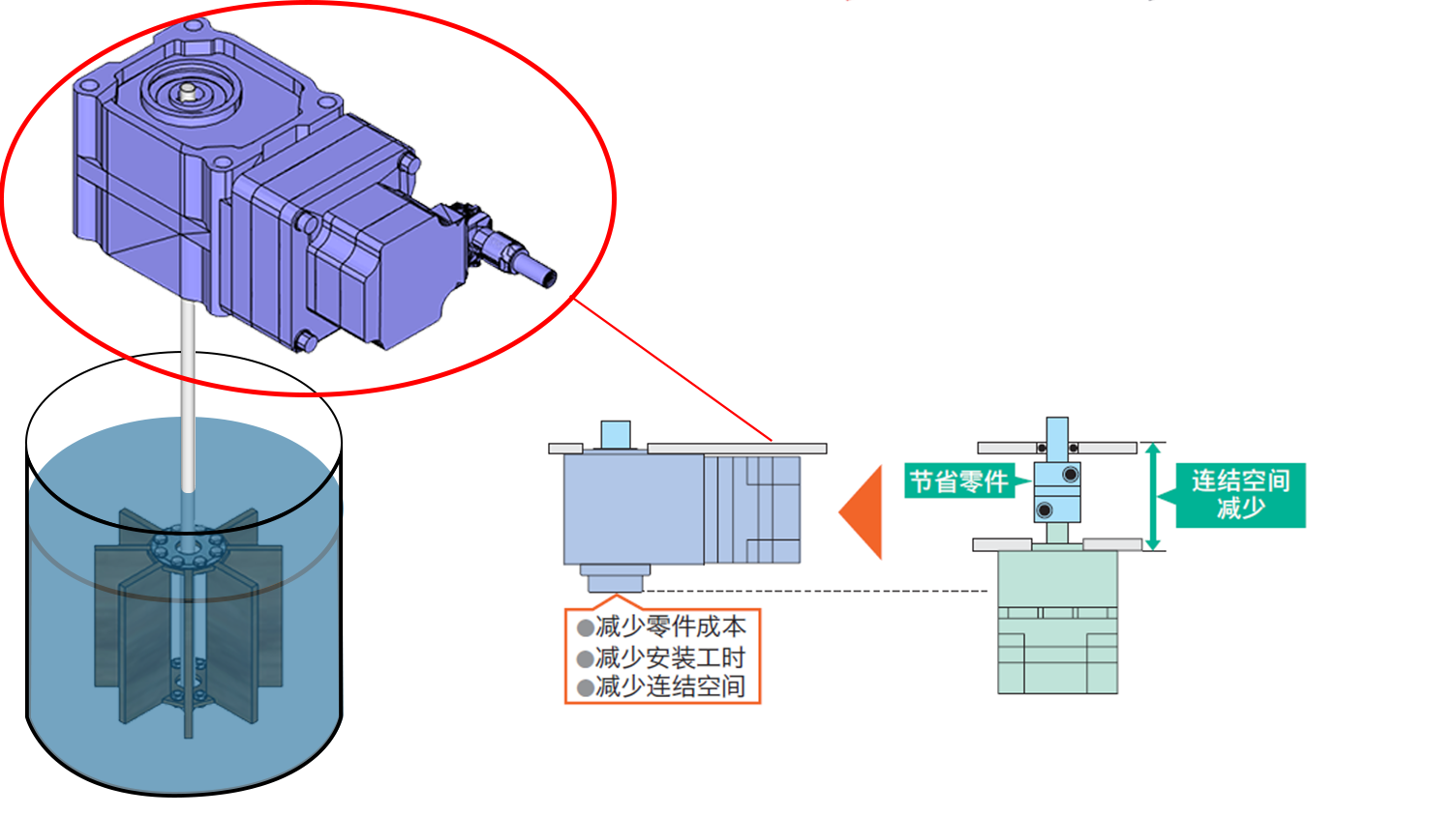 可直接將研磨/攪拌軸安裝至電動機上,無需齒輪等傳動機構,在有效簡化裝置、縮小設備體積,減輕維護保養的負擔的同時,提升傳動效率。