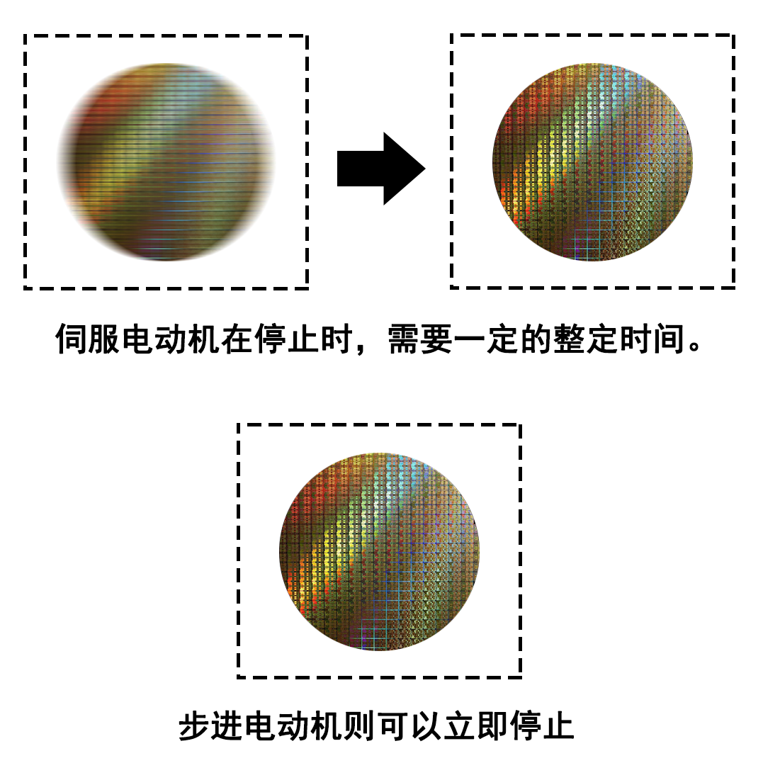 在應用于檢測機構時,如下圖所示,使用步進電動機驅動時無需整定時間,有助于高效率檢測。