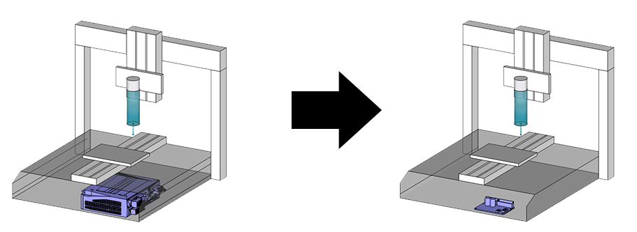過去電動機電流為臺型,而CVD系列可實現正弦波電流的全速度領域的微步驅動。可平滑運行,減少振動,避免振動對在點膠時帶來的負面影響。