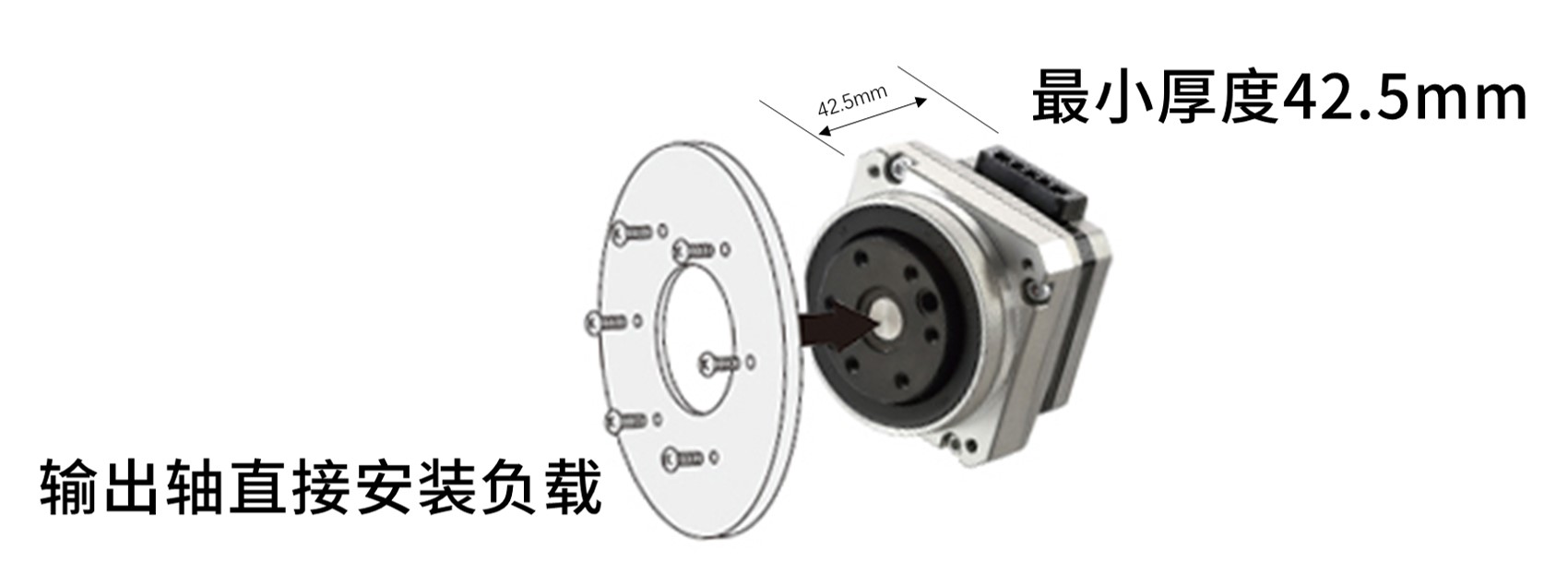 在電動機減小體積的同時,支持輸出軸直接安裝負載的諧波減速機省去了旋轉臺等傳動機構。這樣可以進一步釋放用于防止零件碰撞所浪費的內部空間。