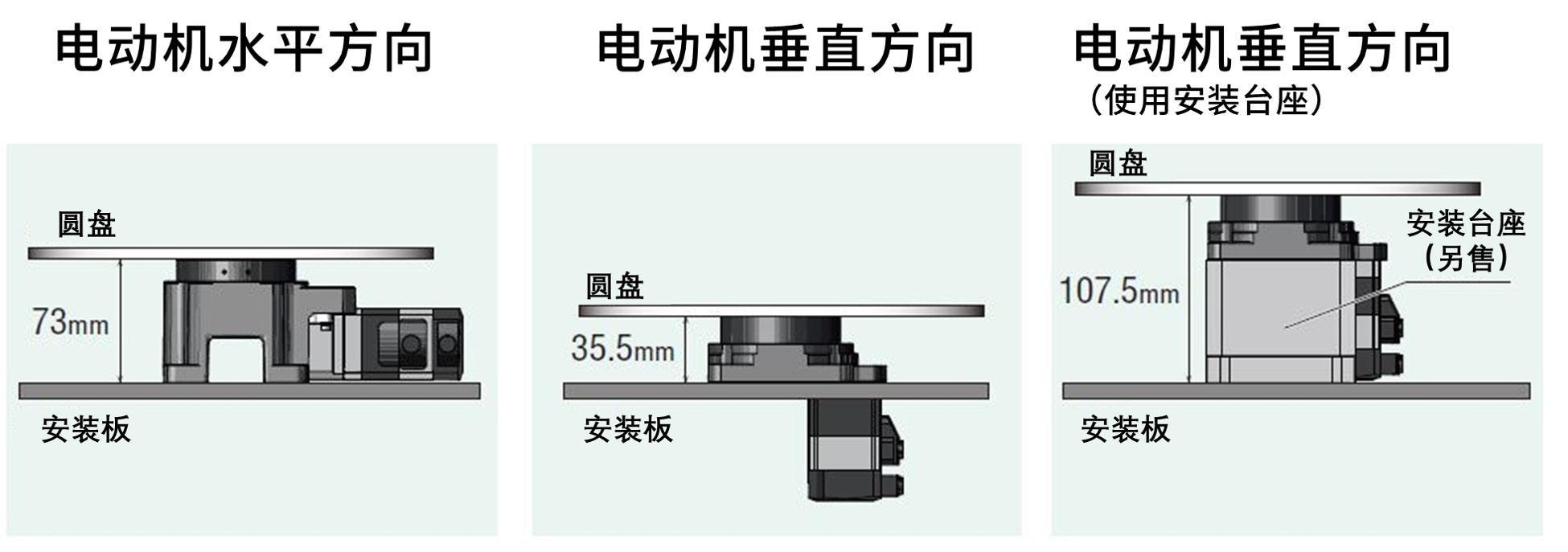 DGⅡ系列備有電動機垂直組裝型、平行組裝型,可根據裝置內的安裝空間進行選擇。垂直組裝型可將電動機隱藏到安裝板之下,最小僅需35.5mm高度即可安裝負載。