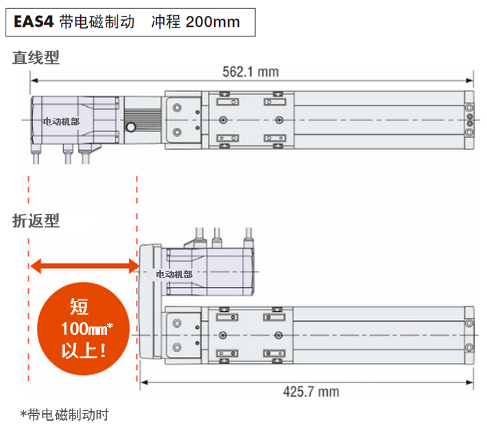 使用折返型電動滑臺,從而減少機構的旋轉半徑,