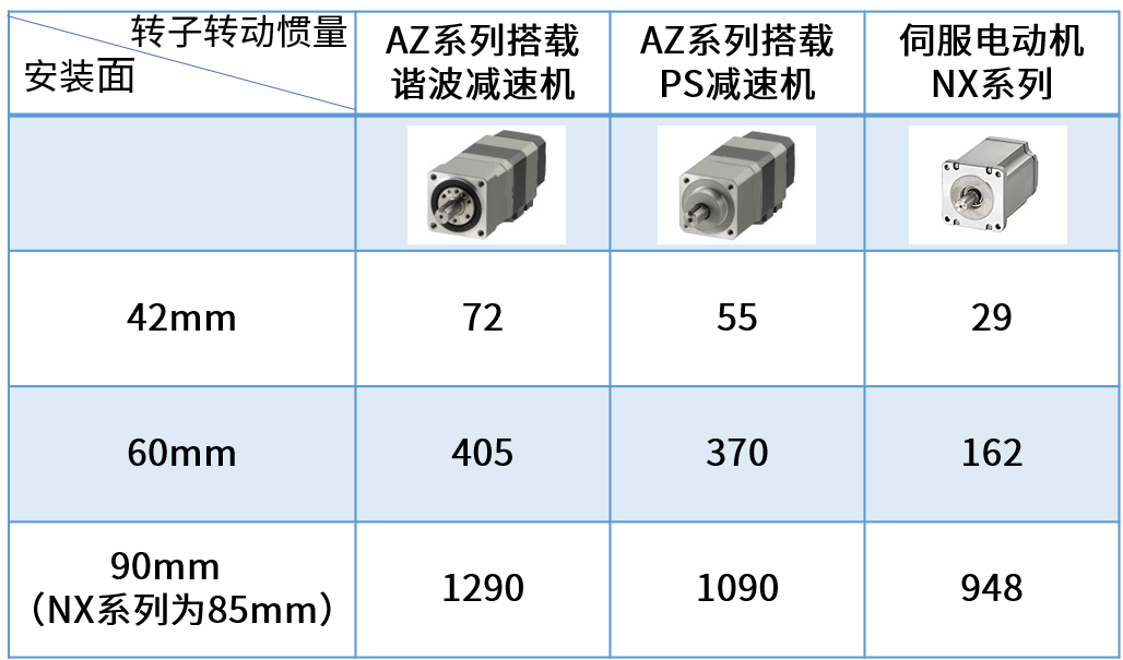 αSTEP AZ系列諧波減速機(jī)型 的轉(zhuǎn)子轉(zhuǎn)動(dòng)慣量較大,可滿足這一需求。