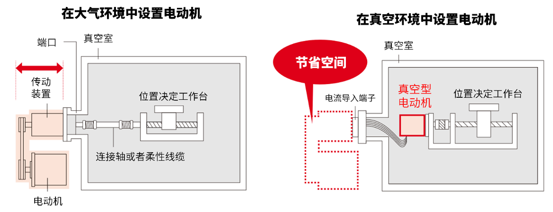 由于搭載了真空對應旋轉變壓傳感器,電動機即使在真空環境中,也可以做到對過負載、過熱保護等狀態的監控。