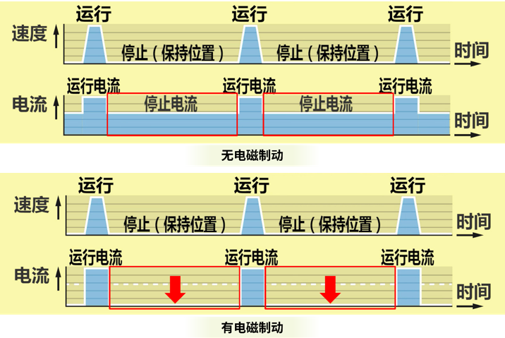 此外,通過選用帶電磁剎車的電動機,還可以降低耗電,響應節能減排。在設備運行過程中,為了保持位置,需要輸入停止電流。當停止時間較長時選用帶電磁剎車型步進電動機,可以切斷停止電流,減小耗電量。
