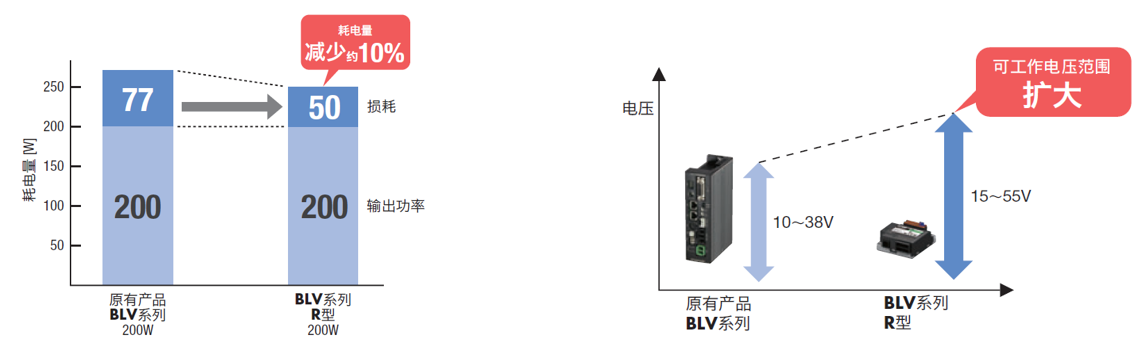 而BLV系列R型的電動機、驅動器均實現了大幅度的小型、輕量化,實現了裝置的小型化·省空間化。