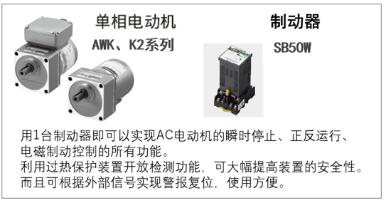用1臺制動器即可以實現AC電動機的瞬時停止、正反運行、電磁制動控制的所有功能。利用過熱保護裝置開放檢測功能,可大幅提高裝置的安全性。而且可根據外部信號實現警報復位,使用方便。