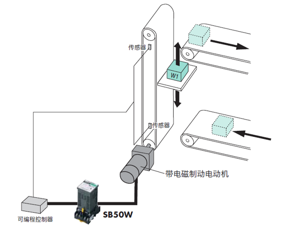 SB50W制動器與帶電磁制動電動機搭配使用時,電子制動與電磁制動連動,做到依靠電子制動進行瞬時停止與電磁制動開關的自動控制,瞬時停止后可自動保持負載。有助于減少對電磁制動的磨耗,達到更長的壽命。特別適用于需要在瞬時停止后保持負載的用途。